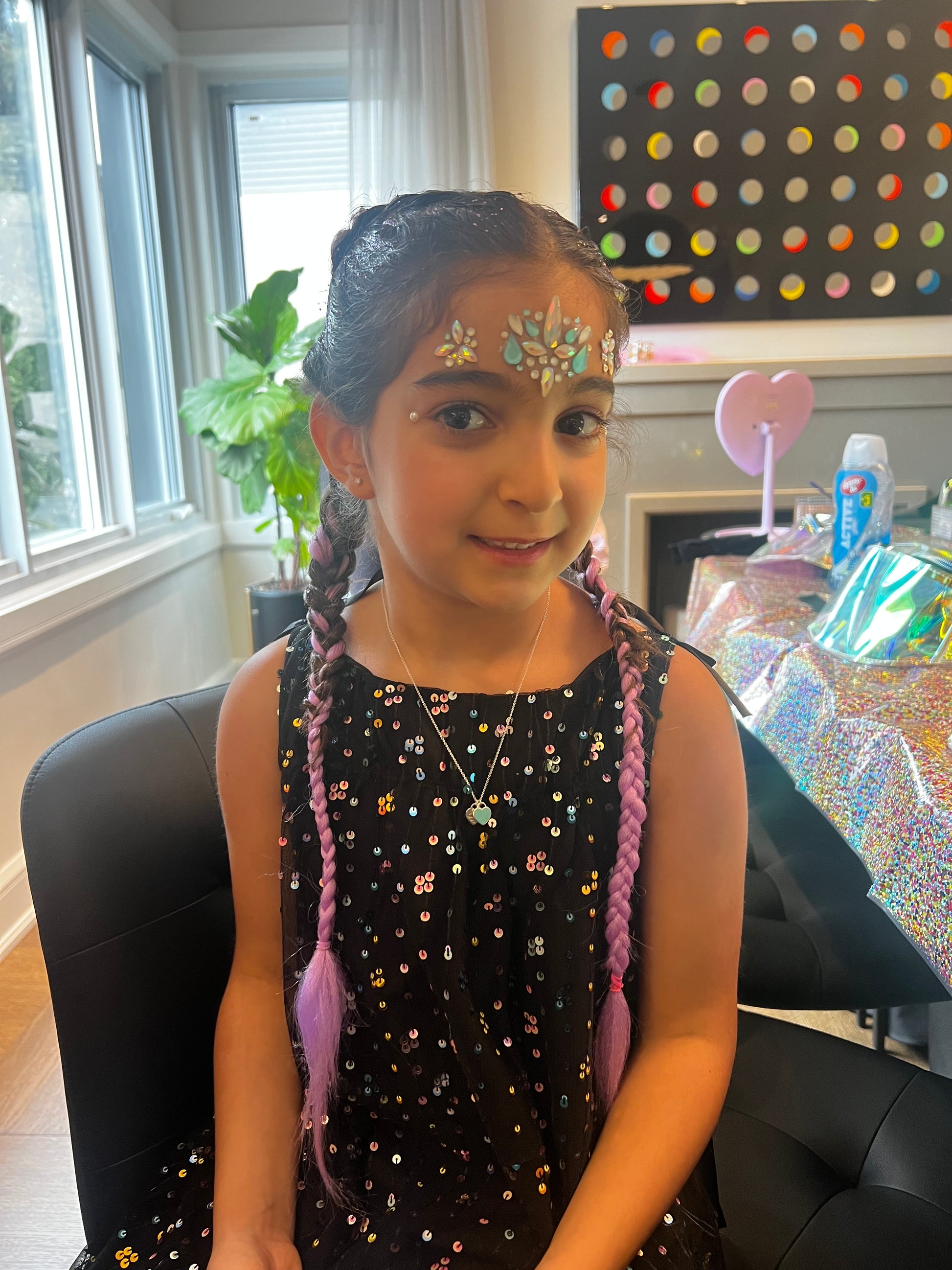 Face jewels and neon face paint available upon request.